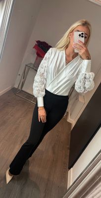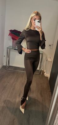Stylowe legginsy, które podkreślają sylwetkę i zapewniają pełen komfort. Modelujący materiał wygładza linię talii i bioder, a nogawka w dzwon optycznie wydłuża nogi. Klasyczna czerń sprawia, że pasują do każdej stylizacji — od sportowej po elegancką. Idealne na co dzień i na wyjście.